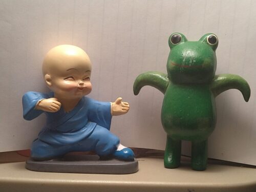 画像はカンフー僧侶と巨大「カエル」の戦いか?それともお坊さんは握手を求めているのでしょうか?