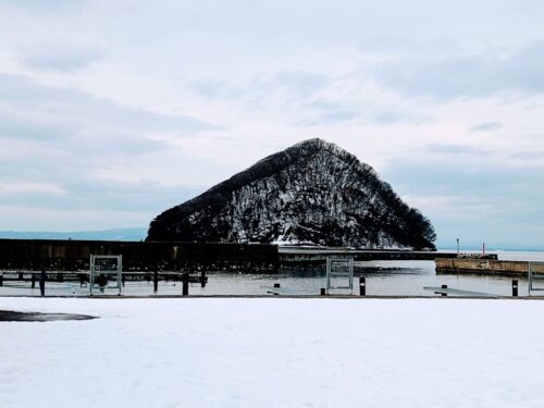 画像は、雪の日の青森県青森市の浅虫海岸です。